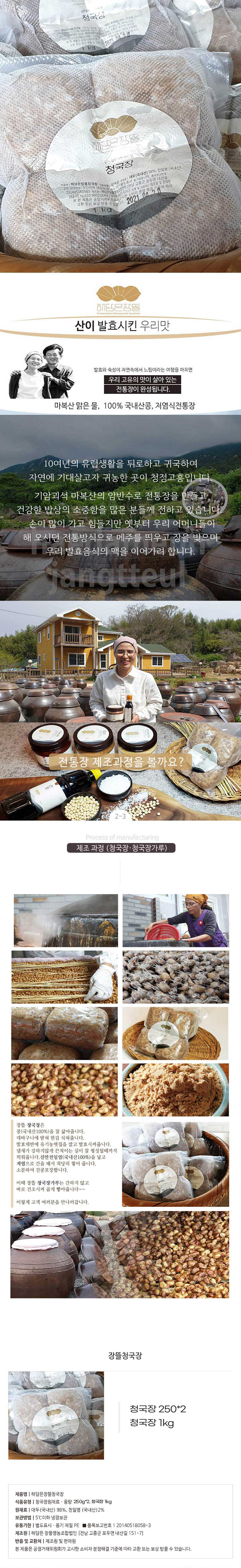 [해담은장뜰]국산콩 유기농볏짚, 냄새없는 고소한 청국장 250g 2개