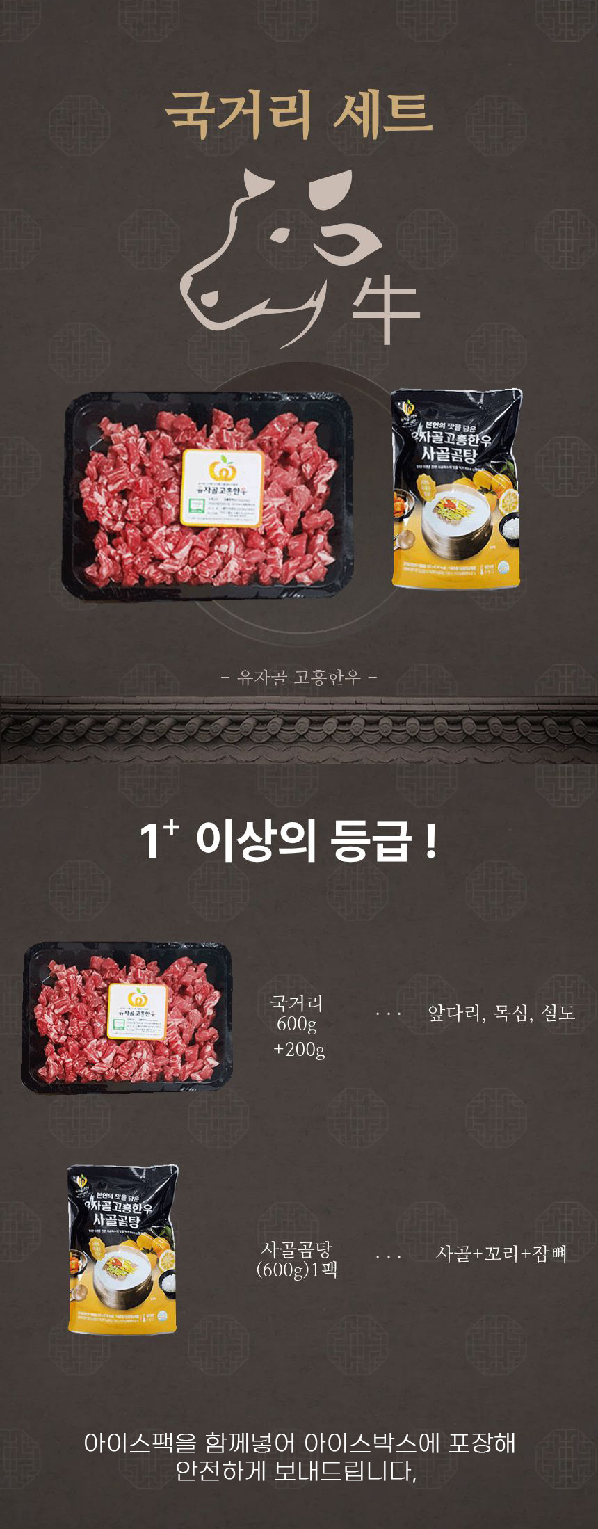 *고향사랑기부제*[유자골고흥한우브랜드] 한우국거리세트(국거리600g,사골곰팅600g1팩)+국거리 200g 추가증정
