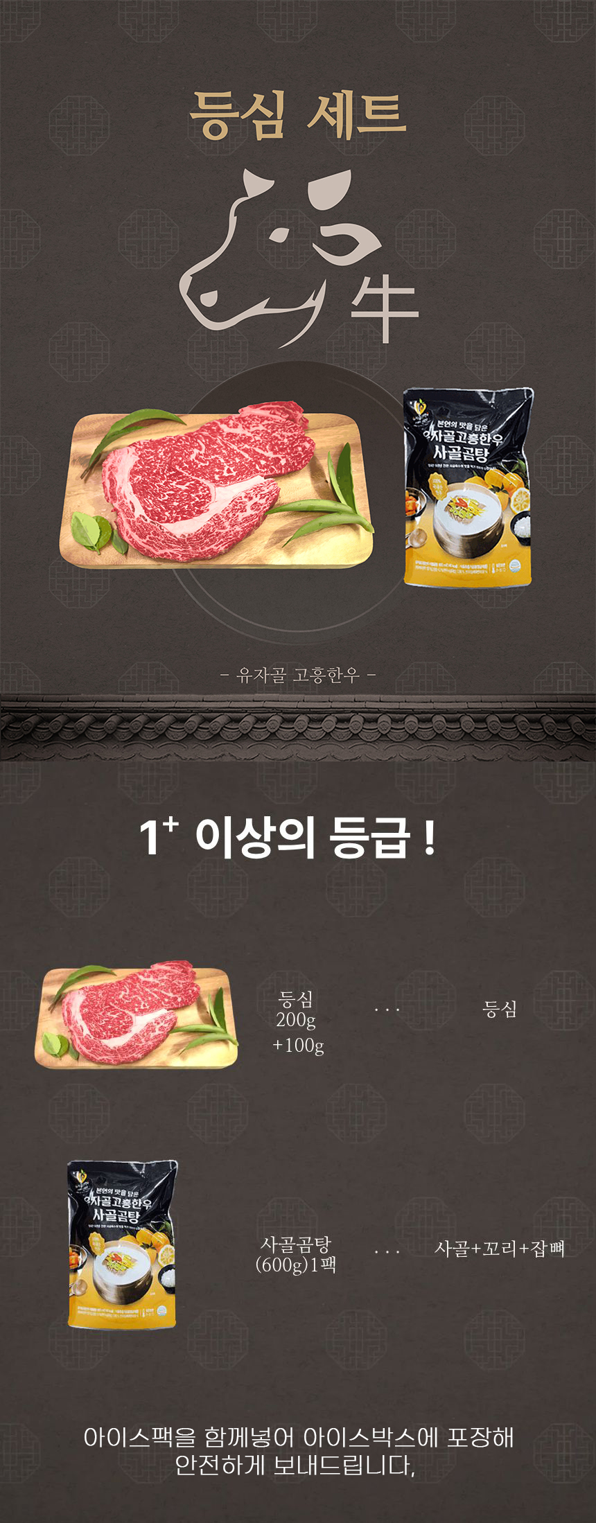 *고향사랑기부제*[유자골고흥한우브랜드] 한우등심세트(등심200g,사골곰팅600g1팩)+등심100g 추가증정