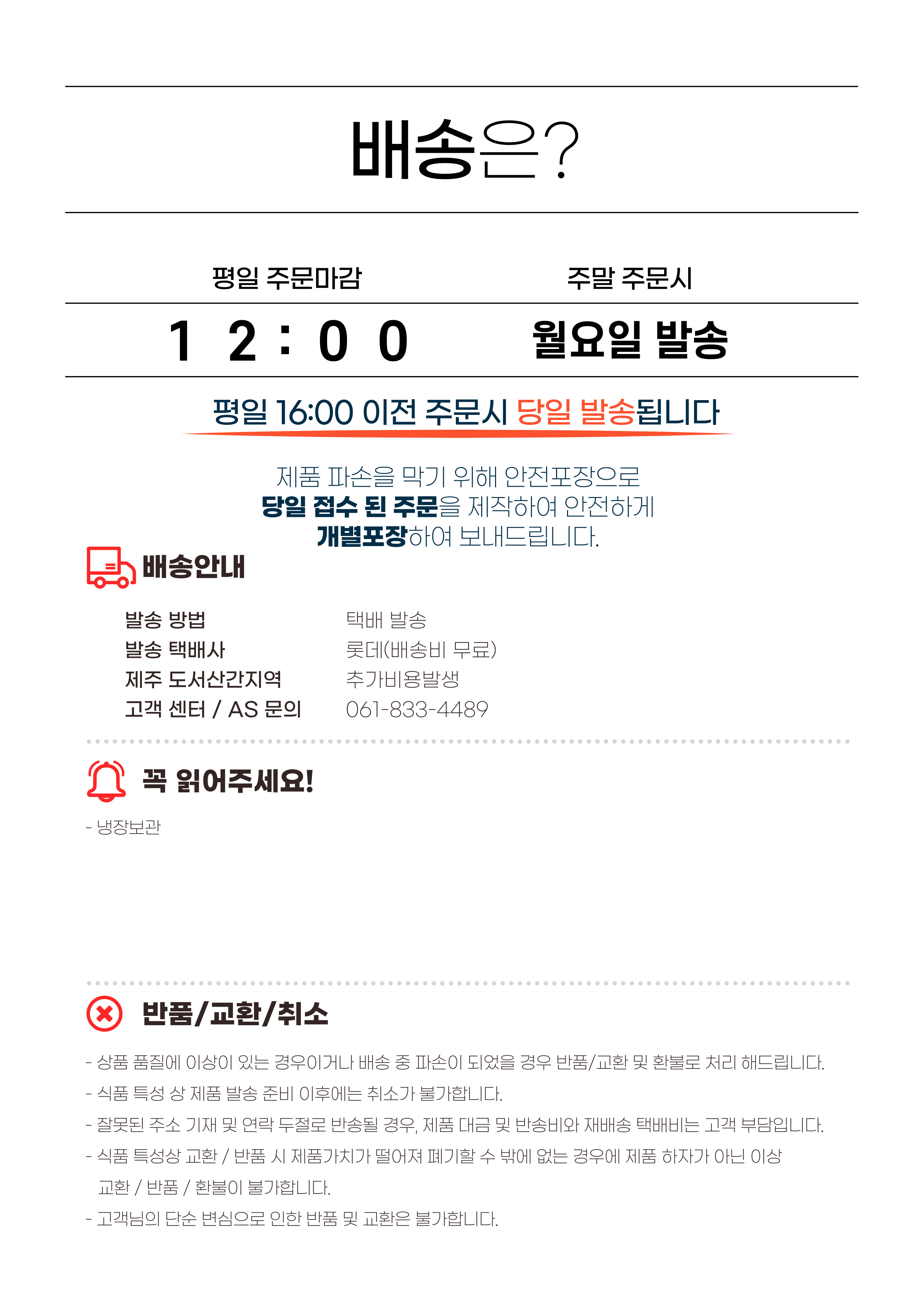교환 및 반품이 필요하실 경우, 고흥몰 고객센터 Q&A를 확인해 주시면 보다 정확한 절차와 안내를 받으실 수 있습니다.
