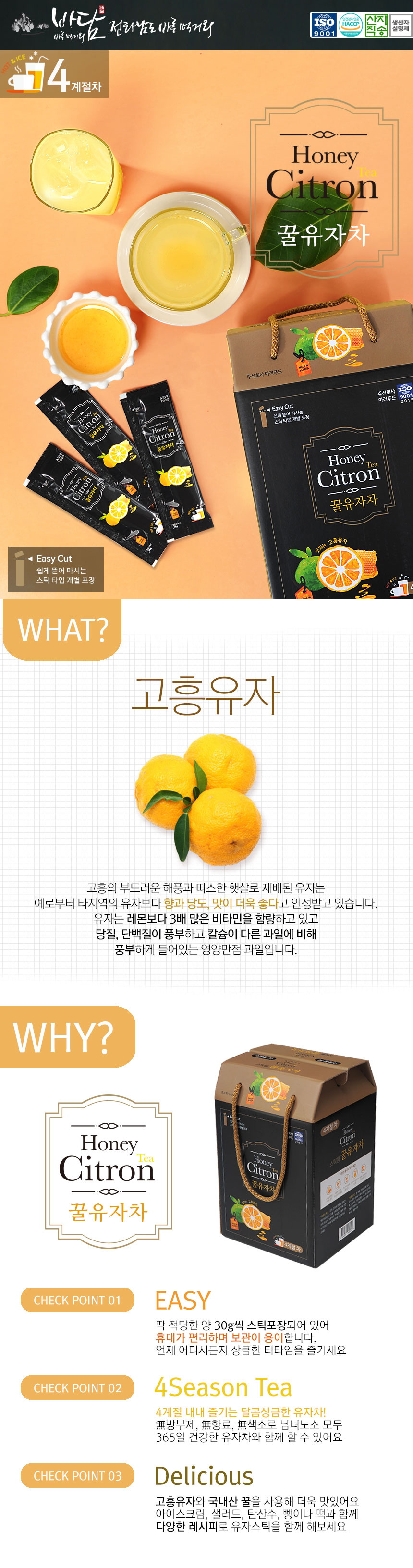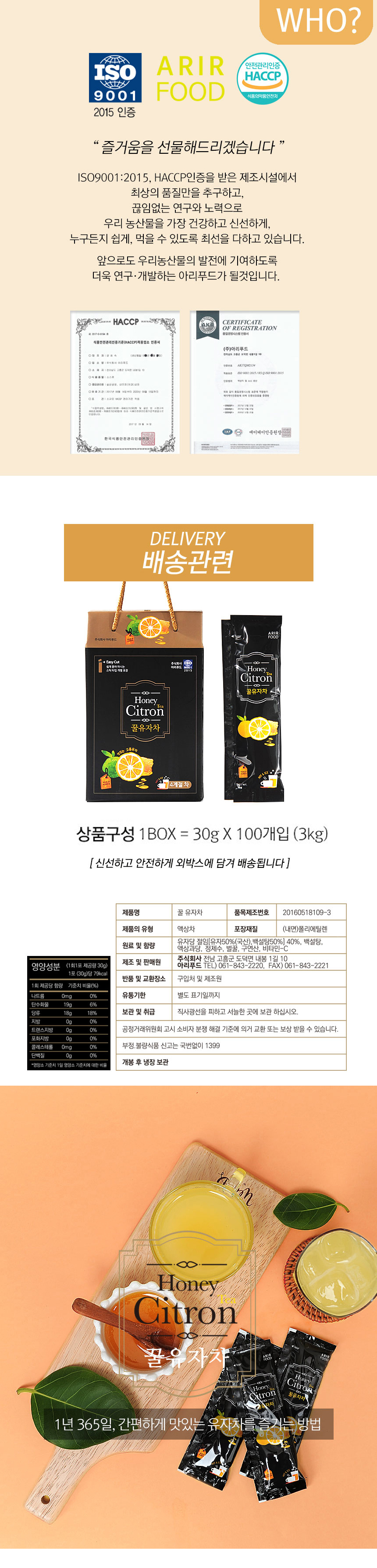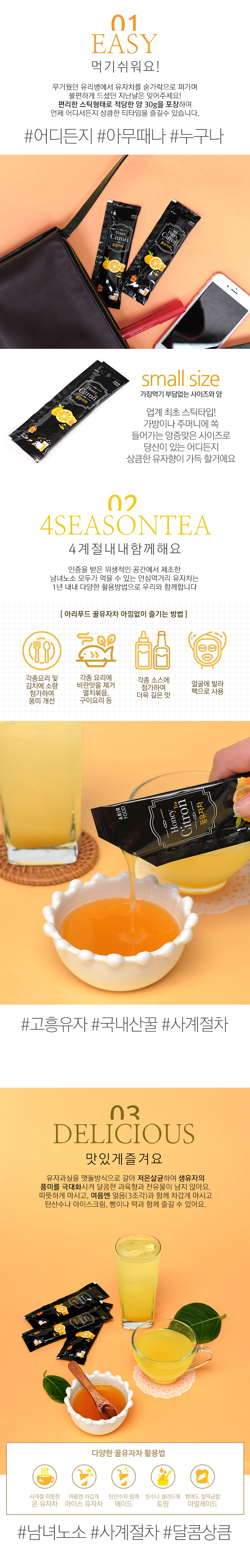 *고향사랑기부제*[아리푸드] 스틱형 꿀 유자차 30g *100개