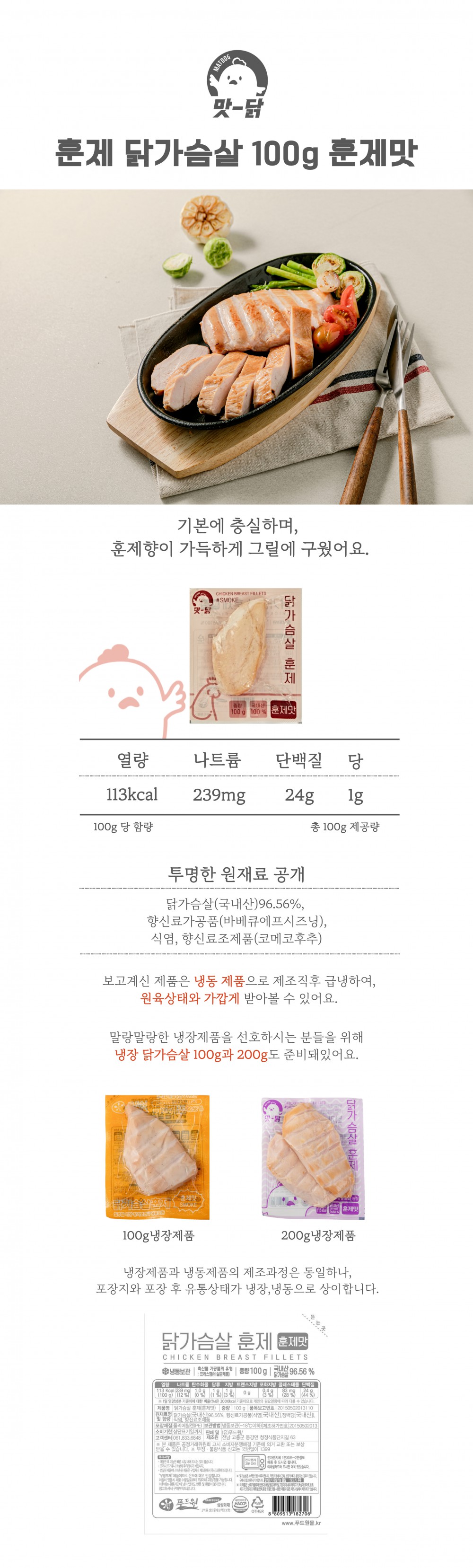 | 원재료명 및 함량 | 닭가슴살 96.56%,식염0.7%,바비큐시즈닝2.44%,분말백후추0.3% |